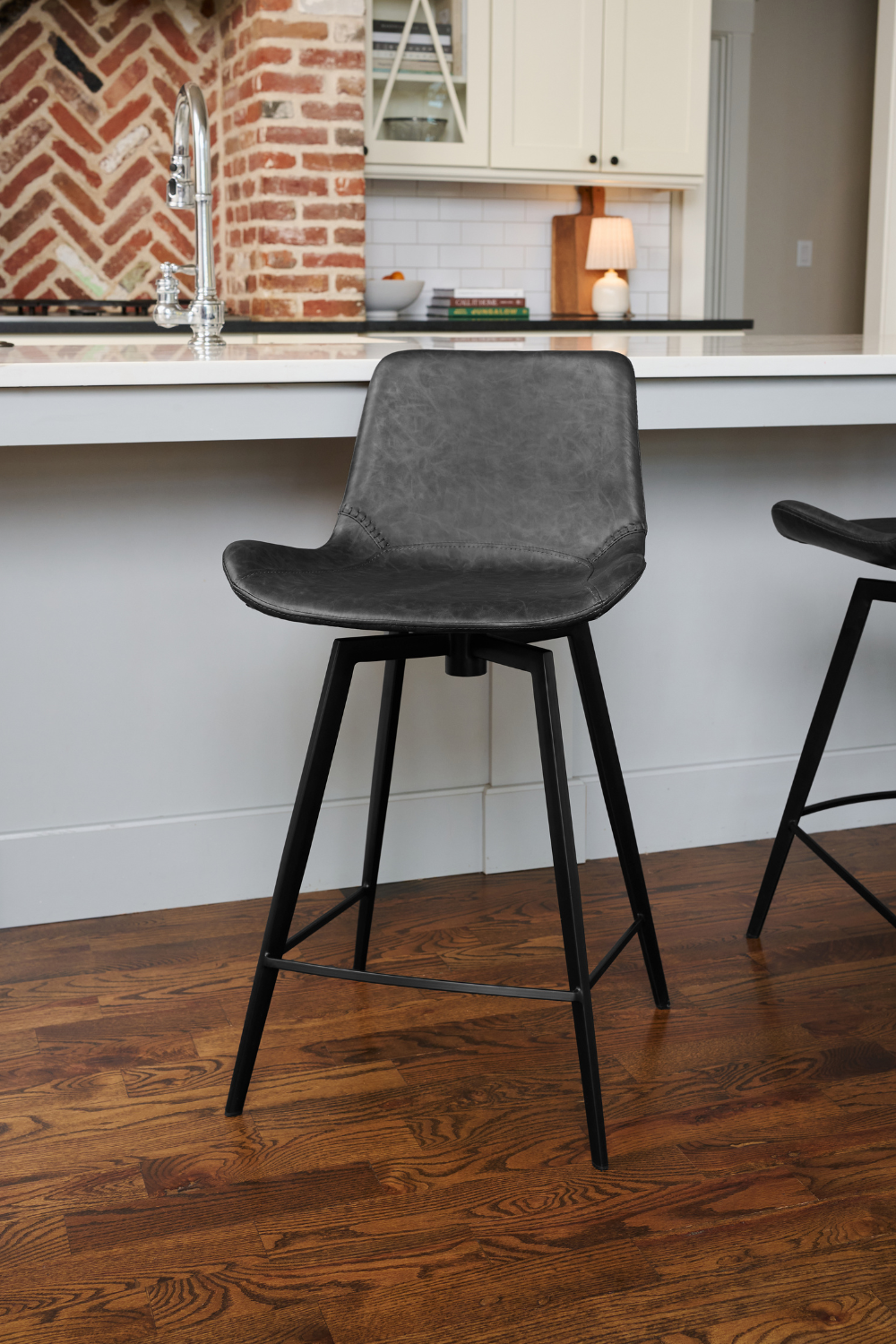 Victor Counter Stool in Black Finish with Dark Grey Faux Leather in Stools by Maven Lane Victor Counter Stool in Black Finish with Dark Grey Faux Leather in Stools by Maven Lane