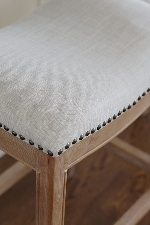 Adrien Saddle Bar Stool in Light Brown Finish and Natural Fabric