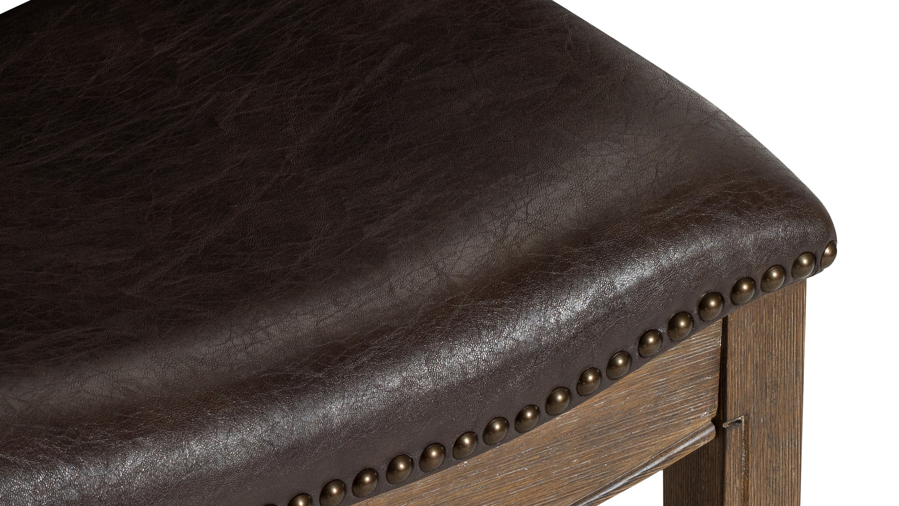 26" Adrien Saddle Counter Stool in Brown Finish with Brown Faux Leather