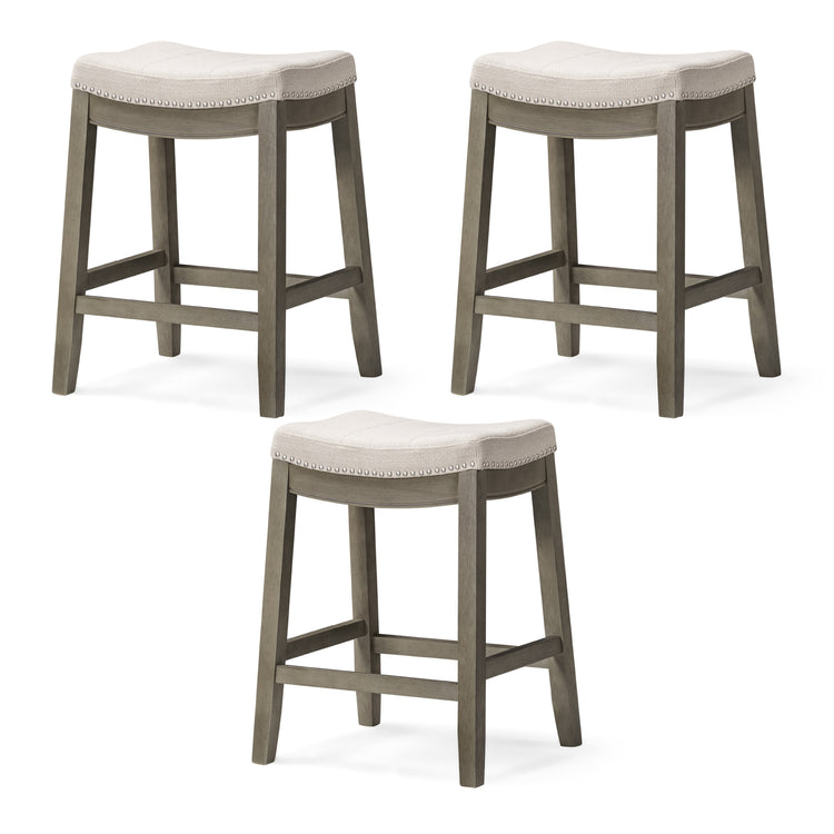 26" Sophia Counter Stool in Grey Finish and Grey Fabric Upholstery (Set of 3)