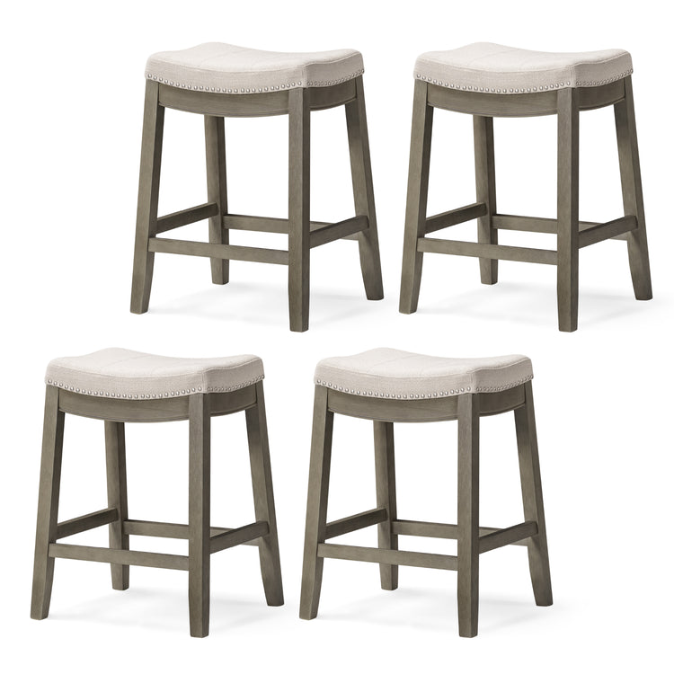 26" Sophia Counter Stool in Grey Finish and Grey Fabric Upholstery (Set of 4)