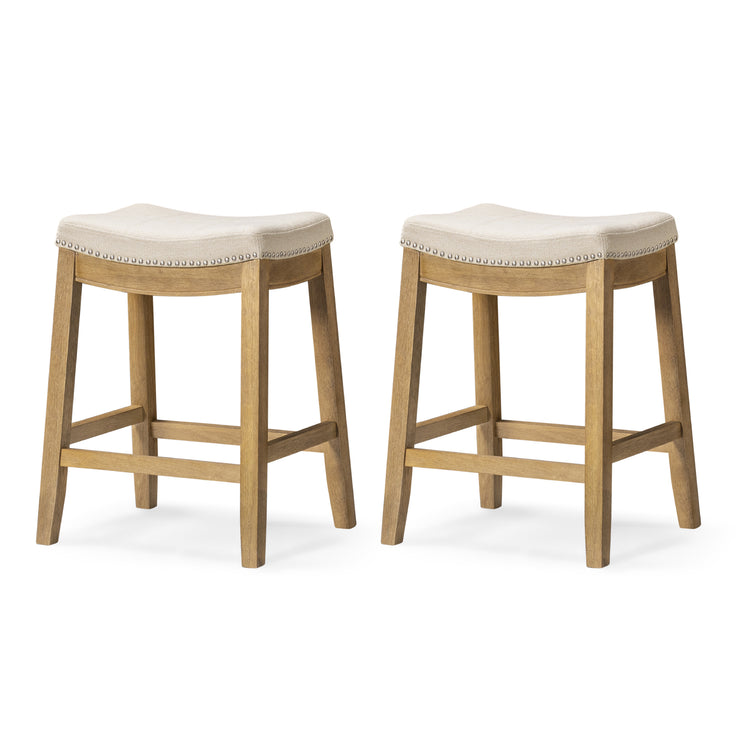 26" Sophia Counter Stool in Natural Finish with Beige Fabric Upholstery (Set of 2)