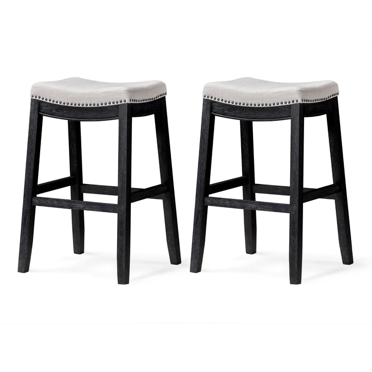 Crafted for Comfort, Designed for Elegance: Built with a sturdy footrest that eases leg pressure, this stool lets you relax in comfort for as long as you like. Its gently contoured saddle seat, upholstered in premium faux leather and finished with elegant nailhead trim, brings everyday seating a touch of timeless style.