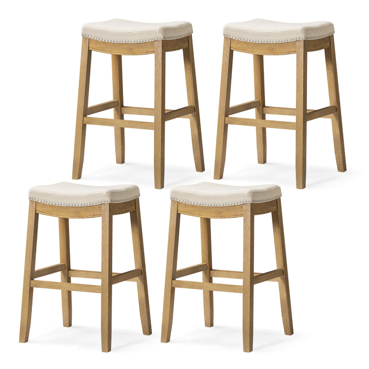 31" Sophia Bar Stool in Natural Finish with Beige Fabric Upholstery (Set of 4)
