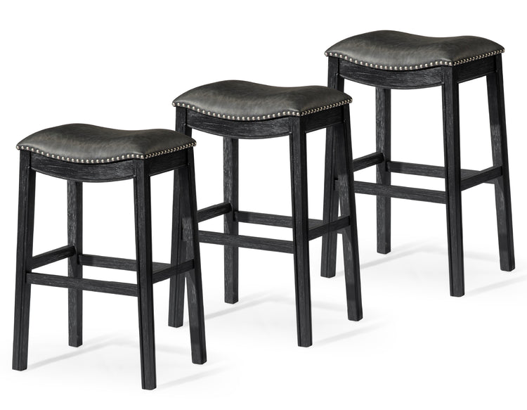 31" Adrien Saddle Bar Stool in Black Finish with Dark Grey Faux Leather (Set of 3)