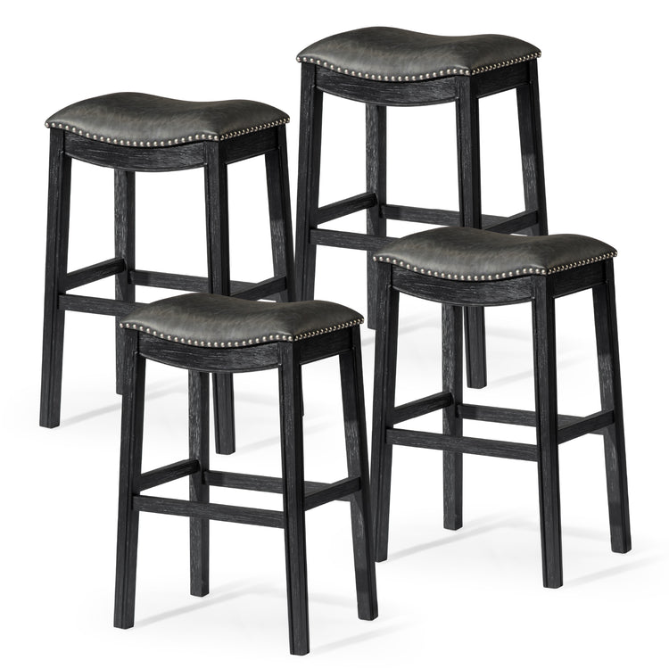 31" Adrien Saddle Bar Stool in Black Finish with Dark Grey Faux Leather (Set of 4)