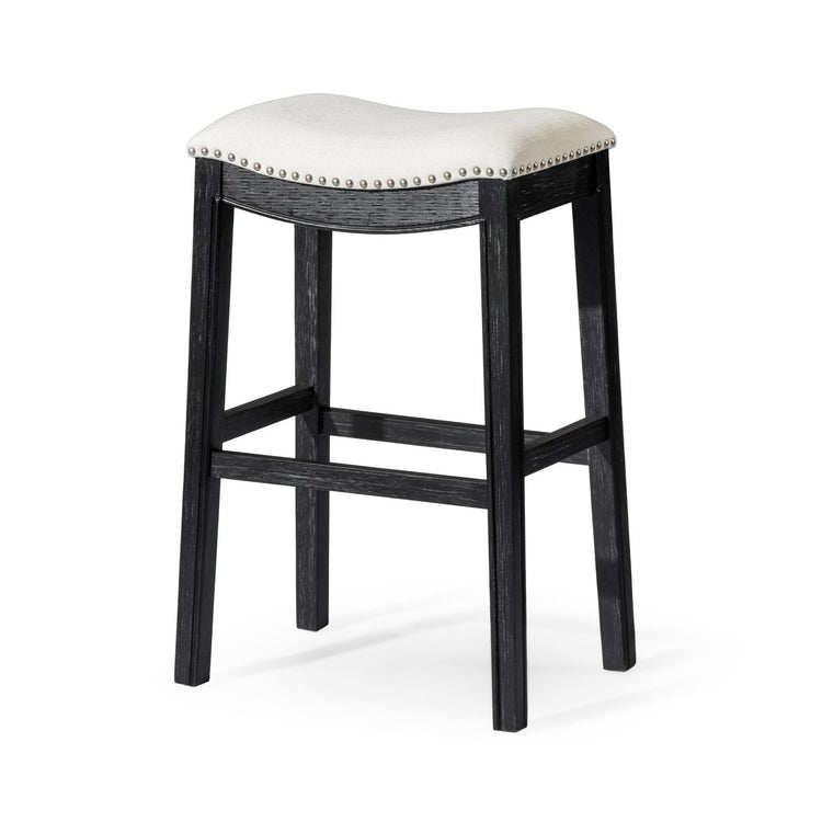 31" Adrien Saddle Bar Stool in Black Finish with White Fabric Upholstery