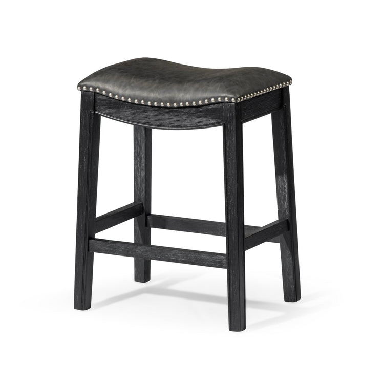 Crafted for Comfort, Designed for Elegance: Designed with a sturdy built-in footrest that takes the pressure off your legs, so you can settle in comfortably for as long as you like. The gently curved saddle seat, upholstered in Grey faux leather with elegant nailhead trim, adds style to that everyday comfort.