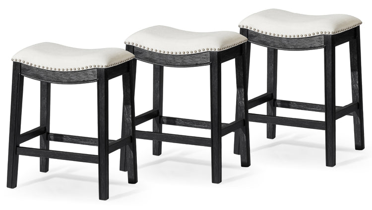 26" Adrien Saddle Counter Stool in Black Finish with White Fabric (Set of 3)