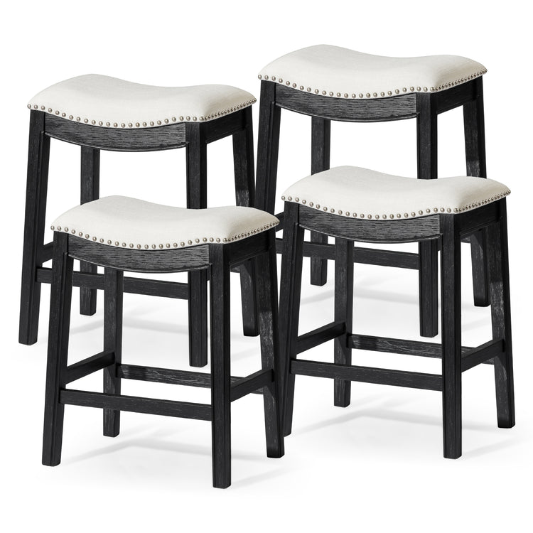 26" Adrien Saddle Counter Stool in Black Finish with White Fabric (Set of 4)
