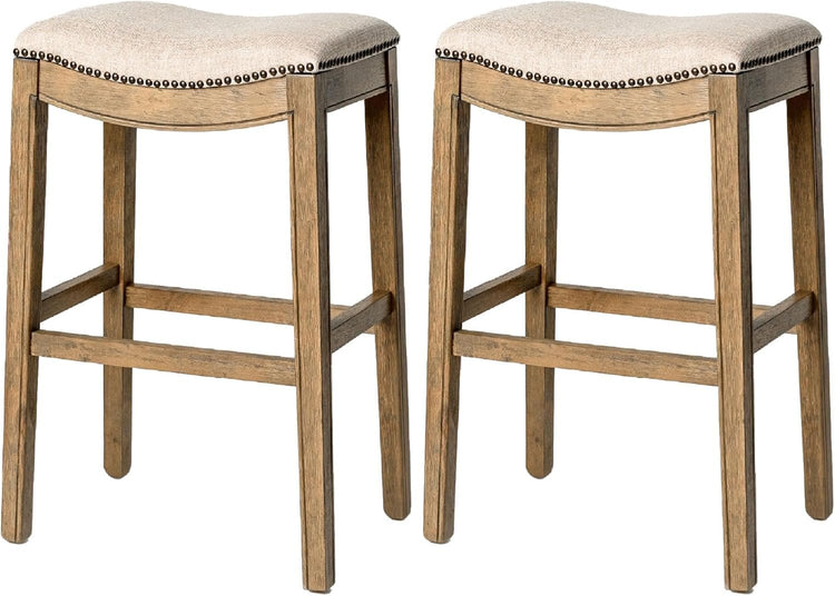 31" Adrien Saddle Bar Stool in Light Brown Finish with Natural Fabric (Set of 2)