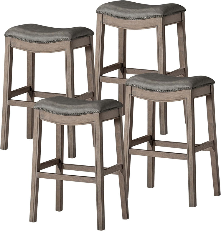 31" Adrien Saddle Bar Stool in Grey Finish with Grey Faux Leather (Set of 4)