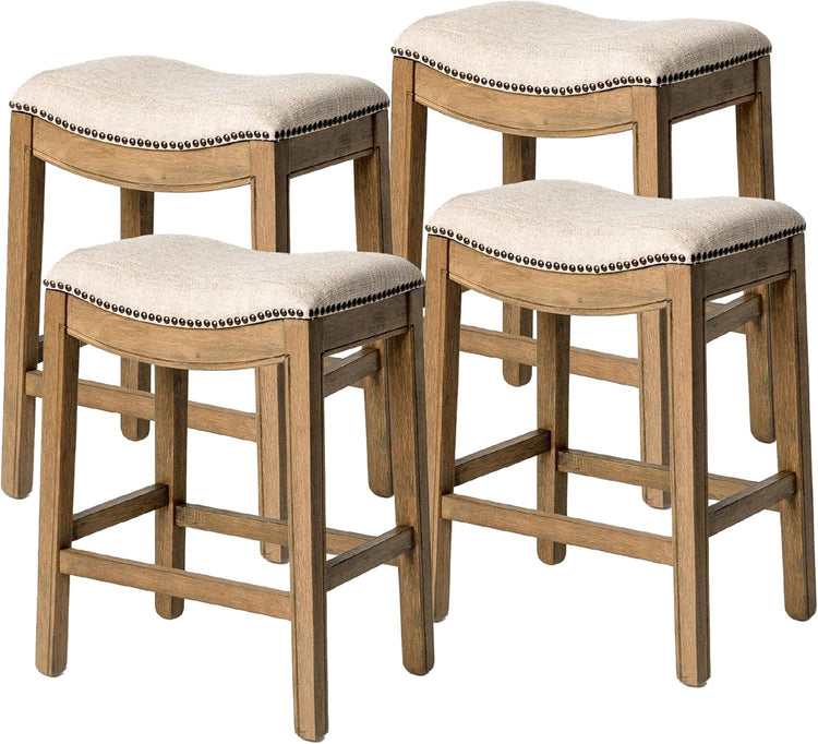 26" Adrien Saddle Counter Stool in Light Brown Finish with Natural Fabric (Set of 4)