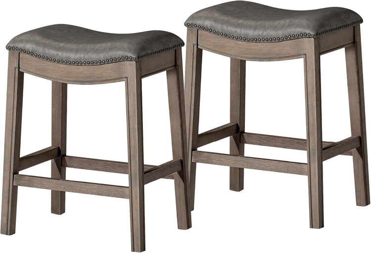 26" Adrien Saddle Counter Stool in Grey Finish with Grey Faux Leather (Set of 2)