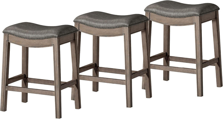 26" Adrien Saddle Counter Stool in Grey Finish with Grey Faux Leather (Set of 3)