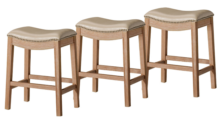 26" Adrien Saddle Counter Stool in Natural Finish with Beige Faux Leather (Set of 3)
