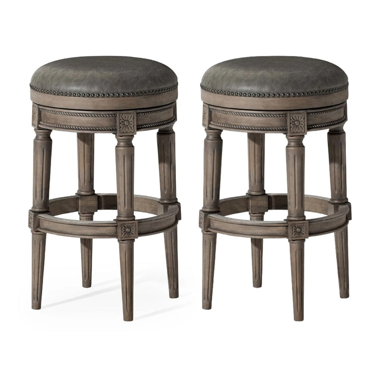 31" Pullman Backless Bar Stool in Grey Finish with Grey Faux Leather (Set of 2)
