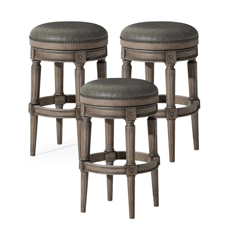 31" Pullman Backless Bar Stool in Grey Finish with Grey Faux Leather (Set of 3)