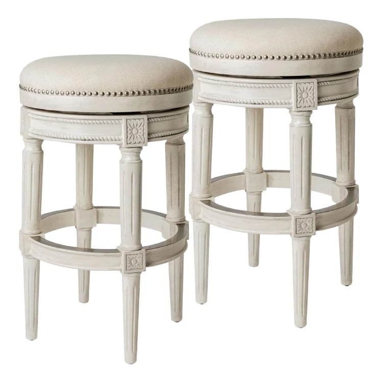 31" Pullman Backless Bar Stool in Cream Finish with Natural Fabric (Set of 2)