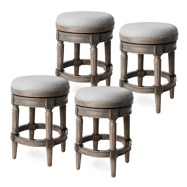 Sold as a set of 4, the Maven Lane Pullman Backless Counter Stool blends refined design with everyday functionality. Finished with a finely upholstered seat and a smooth 180° swivel making it an ideal seating choice for everyday dining or casual gatherings.