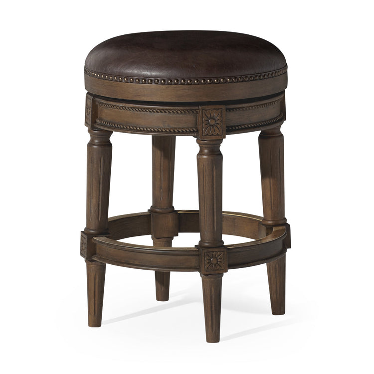 Traditional Craftsmanship Made for Everyday Counter Seating: The Maven Lane Pullman Backless Counter Stool blends refined design with everyday functionality. Finished with a finely upholstered seat and a smooth 180° swivel making it an ideal seating choice for everyday dining or casual gatherings.