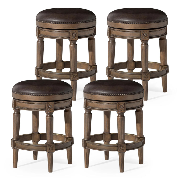 26" Pullman Backless Counter Stool in Brown Finish with Brown Faux Leather (Set of 4)