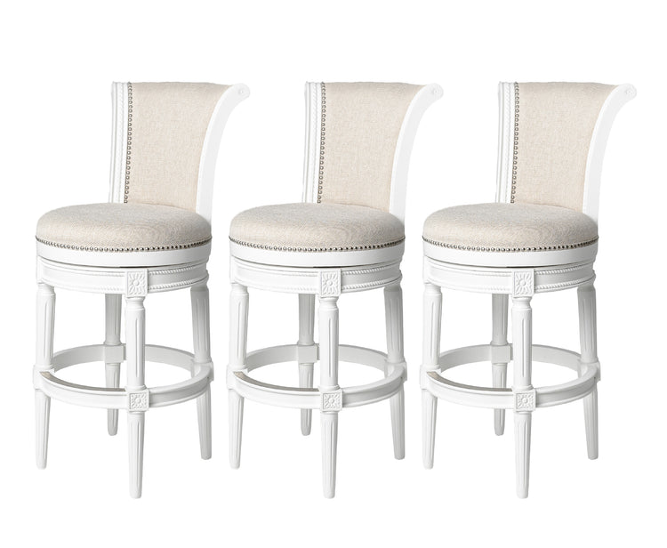 31" Pullman Bar Stool in White Finish with Natural Fabric (Set of 3)