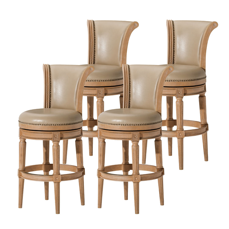 Sold as a set of 4, the Maven Lane Pullman Bar Stool offers a perfect balance of classic charm and everyday function, beautifully finished with a finely upholstered seat, classic nailhead trim, and a smooth 180° swivel making it a standout addition to bars, pub tables, and tall kitchen counters.