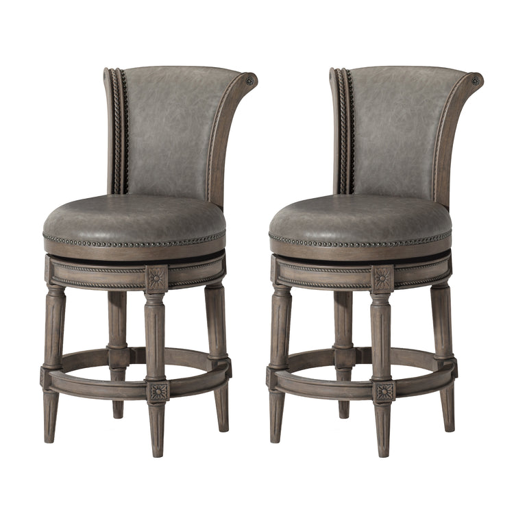 Sold as a set of 2, the Maven Lane Pullman Counter Stool offers a perfect blend of comfort, style, and functionality, beautifully finished with a finely upholstered seat, classic nailhead trim, and a smooth 180° swivel making it an ideal seating choice for everyday dining or casual gatherings.