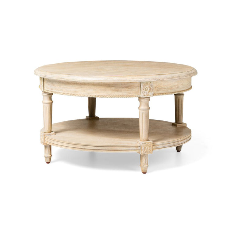 Truly a sight to behold, the intricacies of our Pullman Traditional Wooden Round Coffee Table are simply exquisite. Our wood coffee table features so many superior hand-crafted niceties from the hand-carved detailing and rounded edges to the handsomely reeded legs, and who could forget the charmingly carved rope detailing that’s to die for? Not to mention, there’s ample storage available on the lower shelf of this wooden table, with space for woven bins or lidded boxes. With a gorgeous wood finish, this circle coffee table is effortlessly styled to perfection with a few of your favorite coffee table books and a trailing succulent for good measure. Our Pullman collection has been so widely popular that we’ve expanded—please check out our other furniture pieces in the Pullman repertoire.