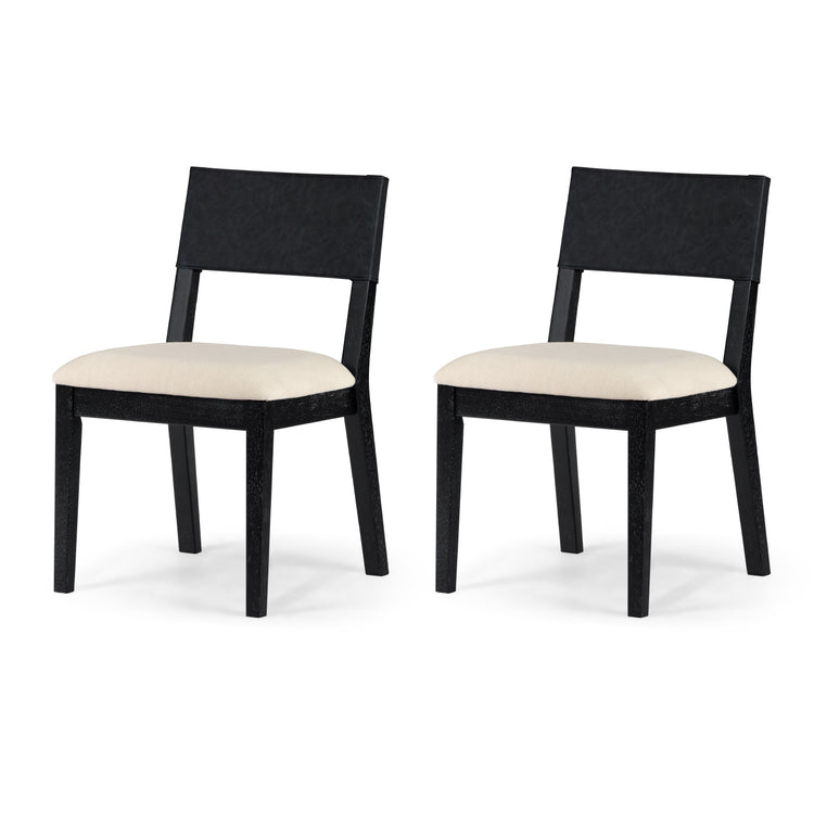 Radi Dining Chair in Black with Beige Fabric Upholstery and Dark Grey Faux Leather Back, Set of 2