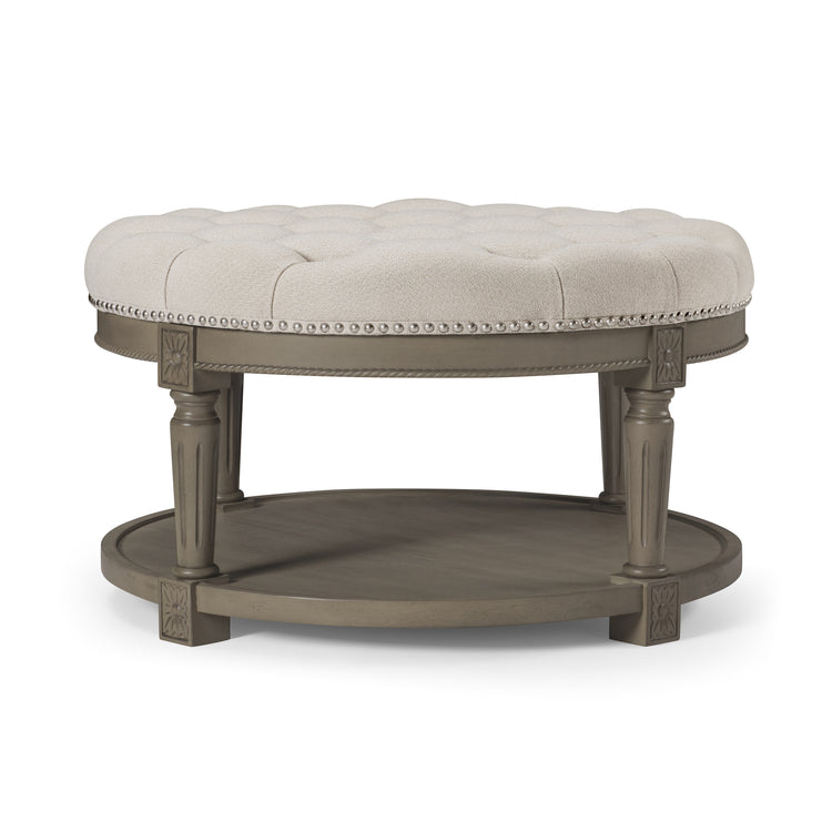 Mesa Round Upholstered Coffee Table in Grey Finish with Grey Fabric
