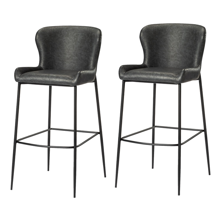 31" Naomi Bar Stool in Black Finish with Dark Grey Faux Leather (Set of 2)