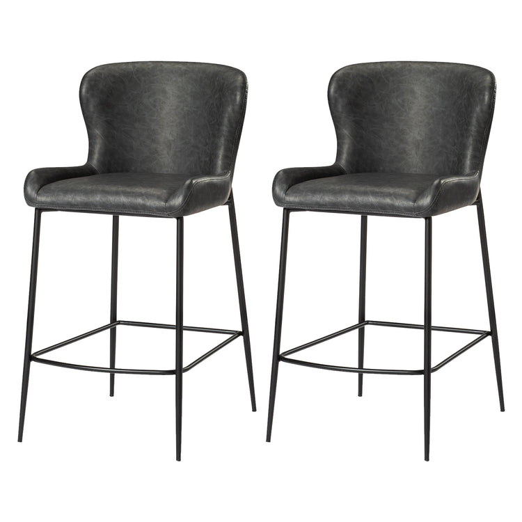 26" Naomi Counter Stool in Black Finish with Dark Grey Faux Leather (Set of 2)