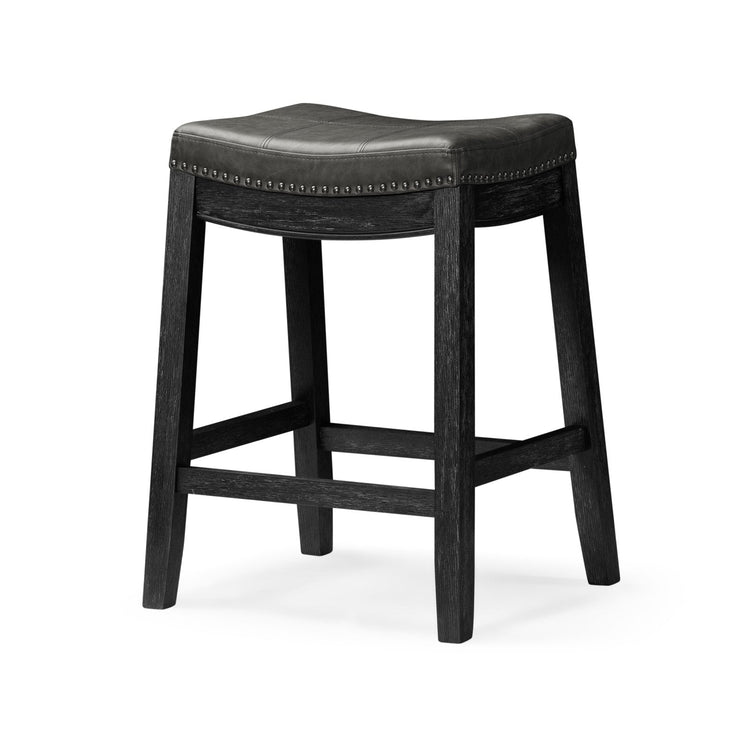 Crafted for Comfort, Designed for Elegance: Built with a sturdy footrest that eases leg pressure, this stool lets you relax in comfort for as long as you like. Its gently contoured saddle seat, upholstered in premium faux leather and finished with elegant nailhead trim, brings everyday seating a touch of timeless style.