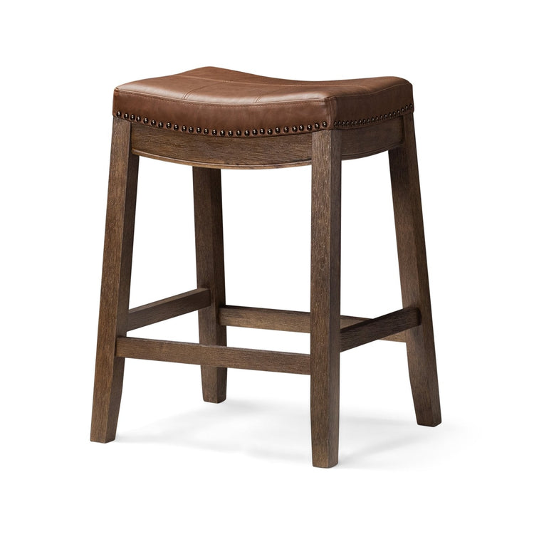 Crafted for Comfort, Designed for Elegance: Built with a sturdy footrest that eases leg pressure, this stool lets you relax in comfort for as long as you like. Its gently contoured saddle seat, upholstered in premium faux leather and finished with elegant nailhead trim, brings everyday seating a touch of timeless style.