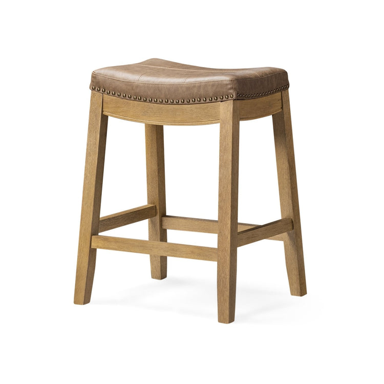 26" Sophia Counter Stool in Natural Finish with Dark Tan Faux Leather Upholstery