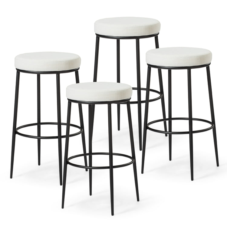 31" Stella Bar Stool in Black Finish with White Fabric (Set of 4)