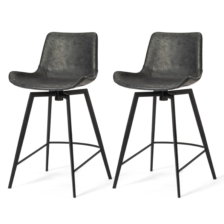 Made for Your Kitchen Counter Gatherings: Sold as a set of 2 the Victor Stool seamlessly blends comfort, style, and functionality. Designed with a fluid 360° swivel for effortless movement, it rests on a strong metal frame and is finished with premium faux leather upholstery, making it a sophisticated and versatile addition to any space.