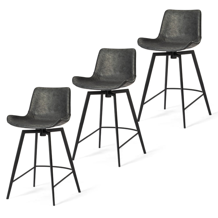 Made for Your Kitchen Counter Gatherings: Sold as a set of 3 the Victor Stool seamlessly blends comfort, style, and functionality. Designed with a fluid 360° swivel for effortless movement, it rests on a strong metal frame and is finished with premium faux leather upholstery, making it a sophisticated and versatile addition to any space.